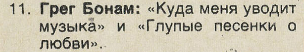 На странице 9 этого номера журнала в рубрике "ГОСТИ МОСКВЫ" была напечатана статья Владимира Азарина ГРЕГ БОНАМ, рассказывающая об этом певце.