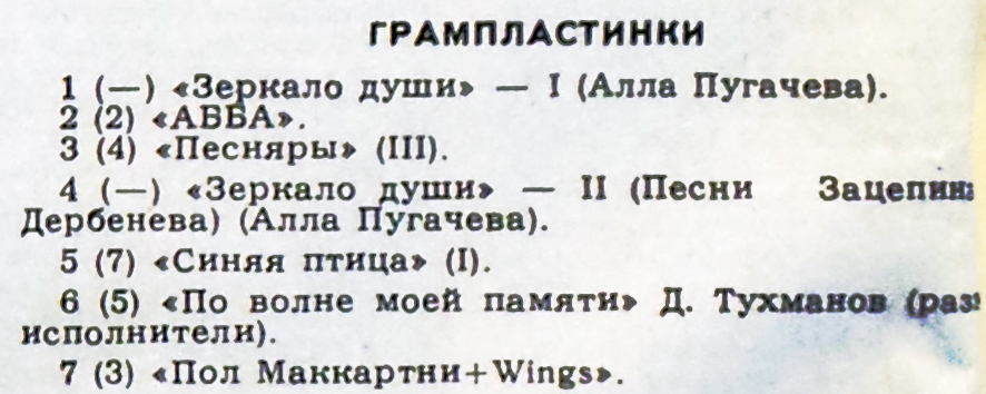 под № 7 (3) указан альбом ПОЛ МАККАРТНИ + АНСАМБЛЬ «WINGS» [подробней о нём см. здесь], но название диска дано в немного сокращённом виде – ПОЛ МАККАРТНИ + WINGS.