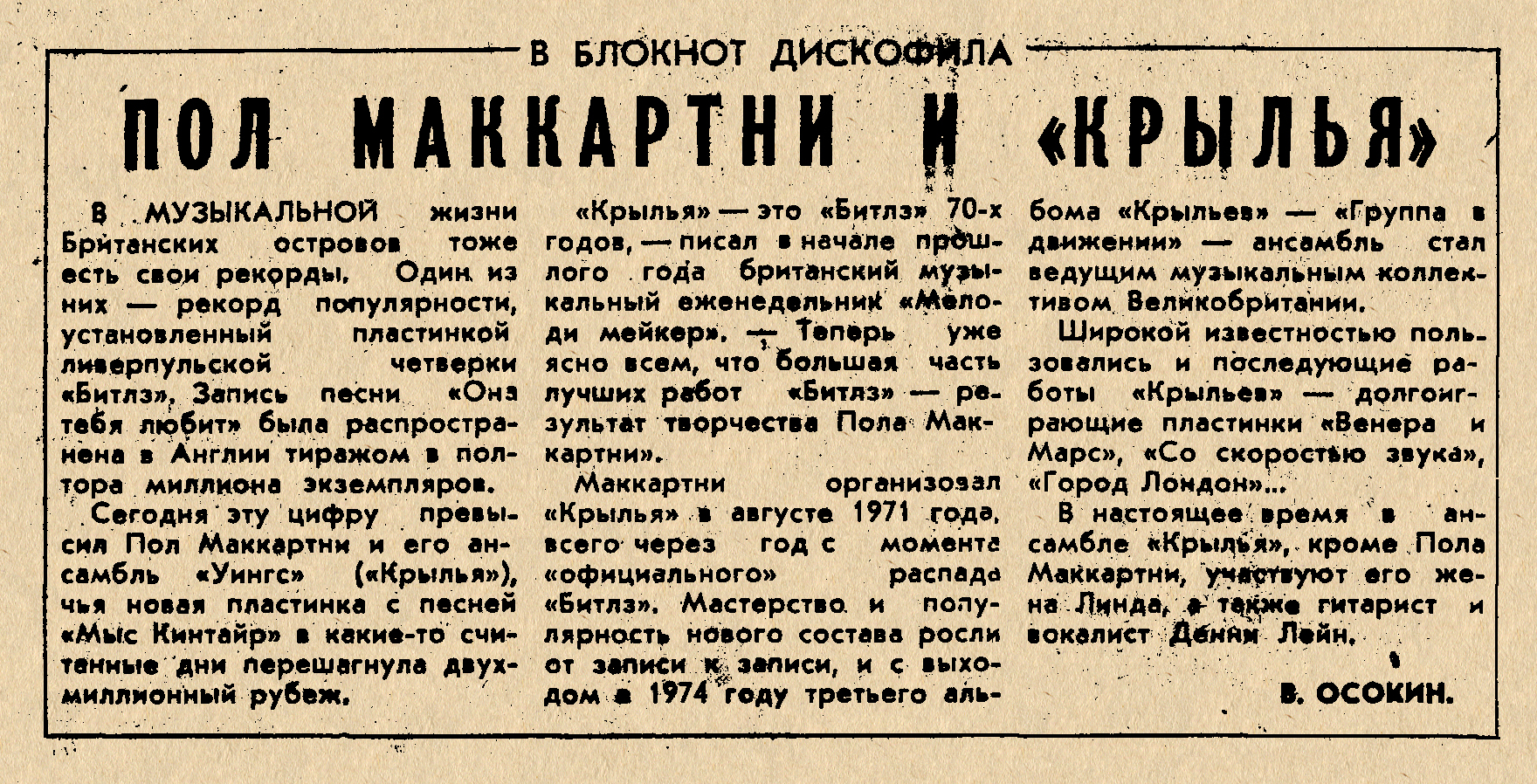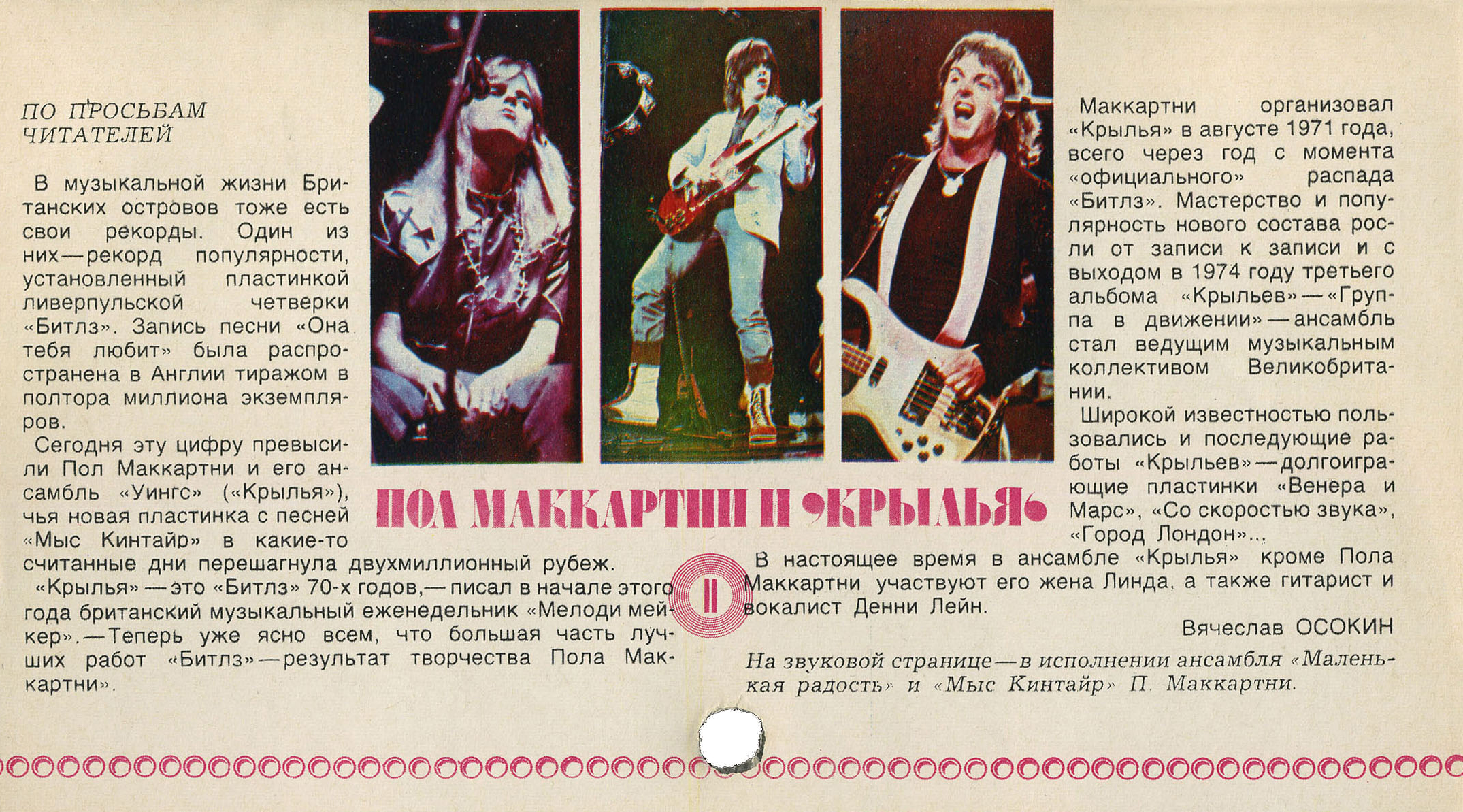 В журнале Кругозор вместо фотографии Денни Лейна (Denny Laine) ошибочно была напечатана фотография Джимми Маккаллока (Jimmy McCulloch).